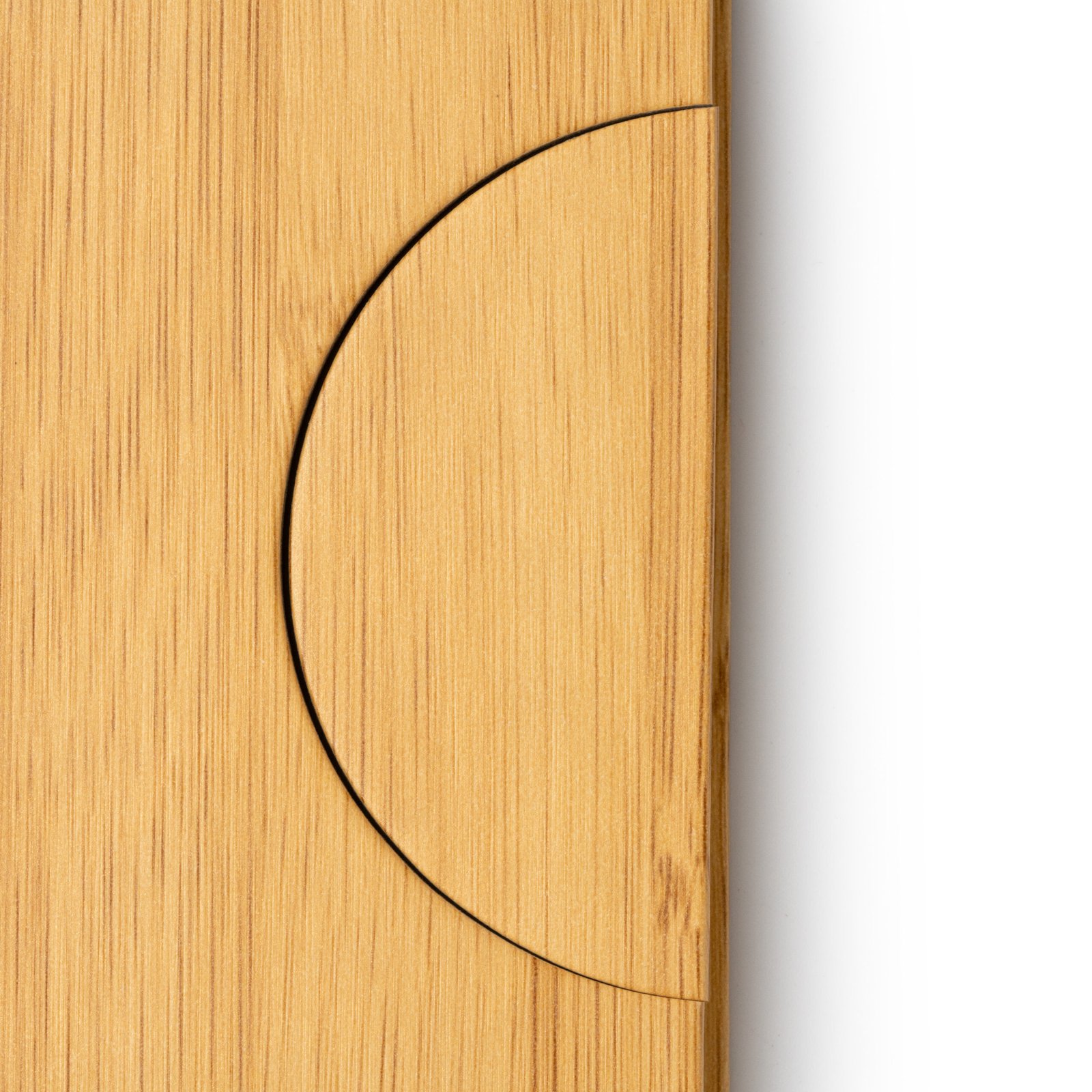 Bloc de notas A5 con tapa rígida elaborada en cuero reciclado con efecto bambú con función soporte para dispositivos. Marcapáginas y 80 hojas lisas.