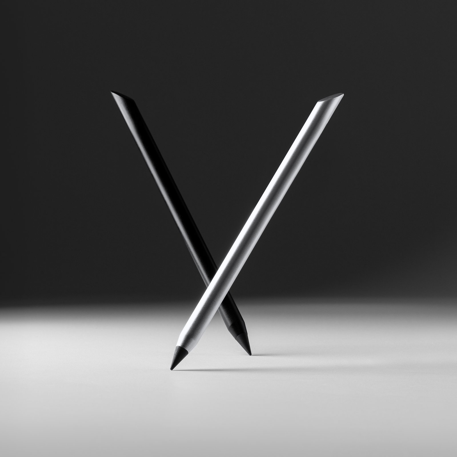 Lápiz con cuerpo de aluminio con elegante diseño. Punta de grafito de escritura infinita reemplazable. Con capucha transparente.